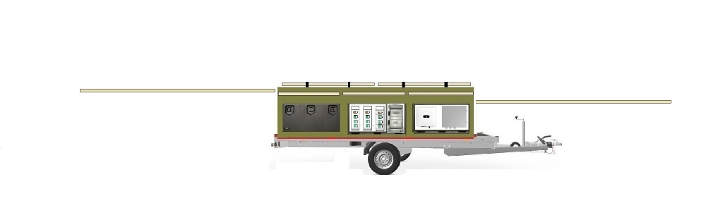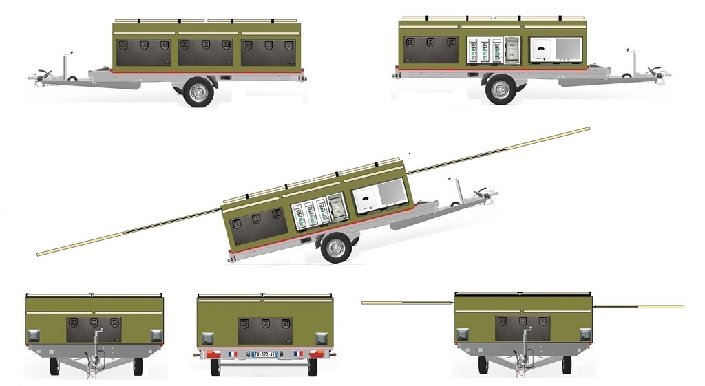 Les 14 panneaux d’une surface totale déployée de 25 m2 se rétractent intégralement dans une remorque de 3.60mx2.4m.