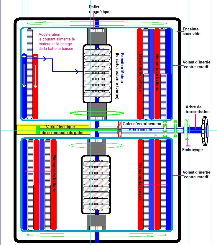 -1 Elle emmagasine à la demande de l’énergie cinétique dans ses 2 volants.