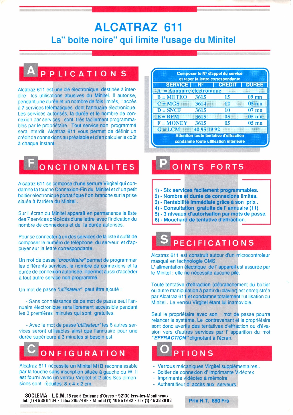 Alcatraz 6-11 a été conçu et développé en interne par SOCLEMA et son fondateur Philippe Géraudel dans le cadre du « plan puces ».