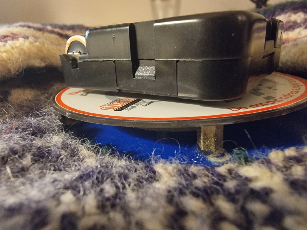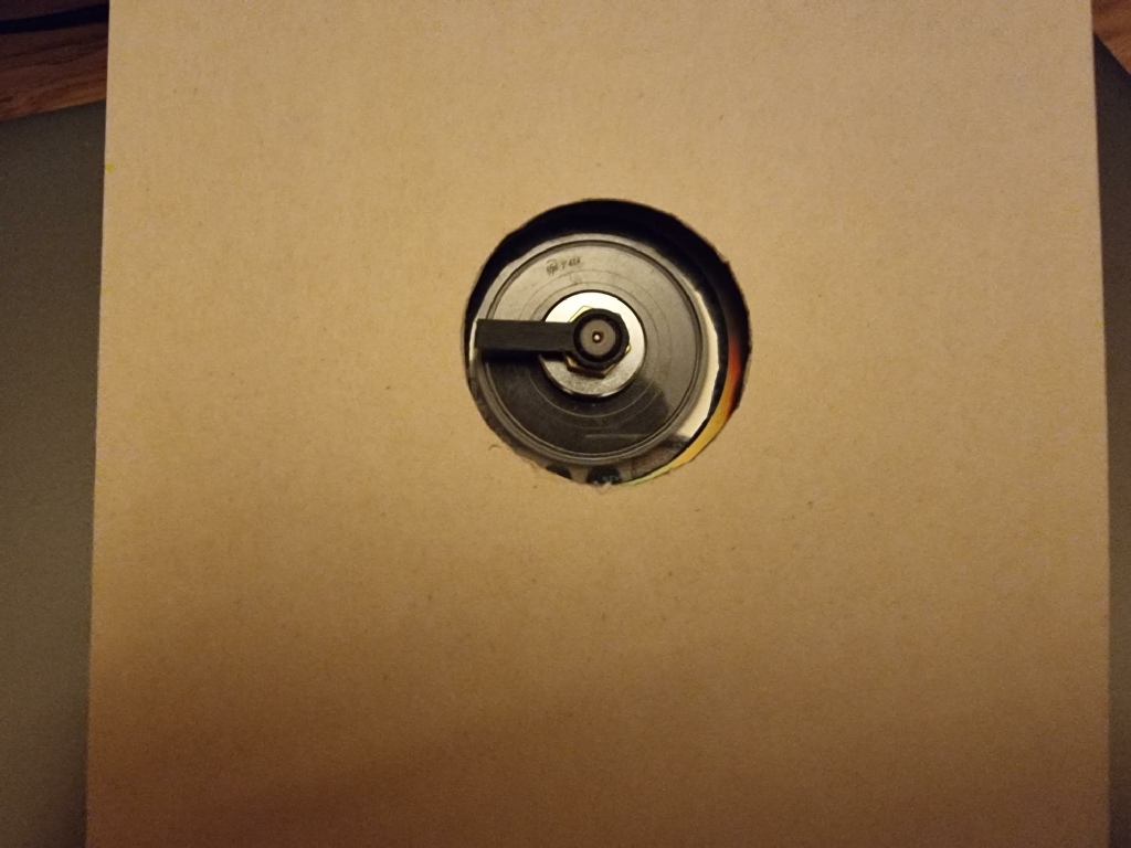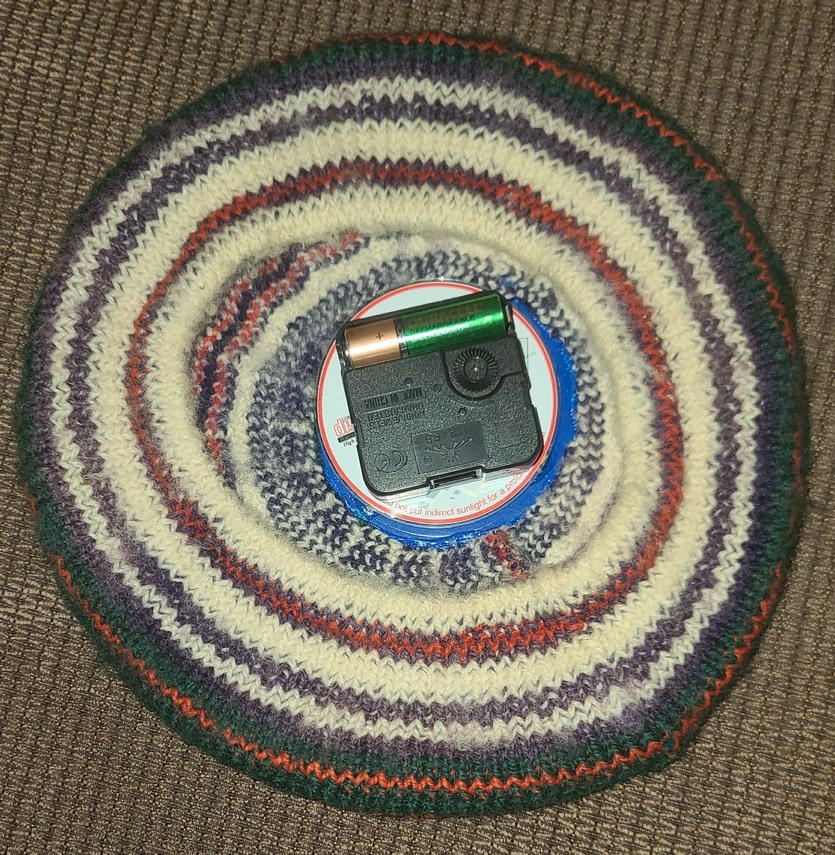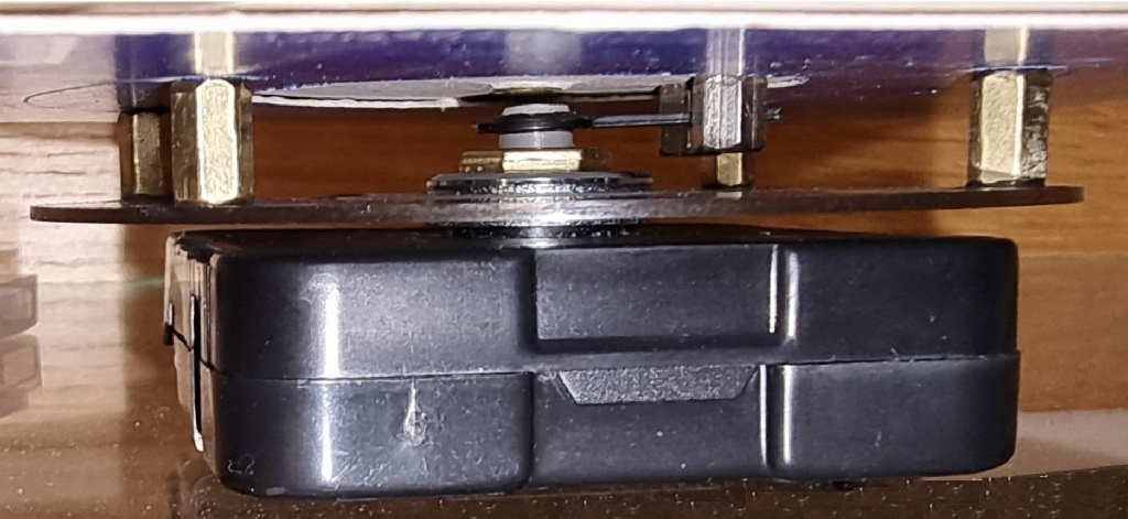 La rotation du disque est entraînée par l’aiguille des heures d’un moteur de pendule électrique.