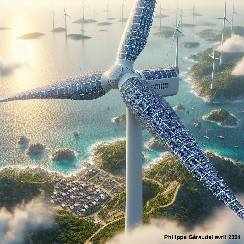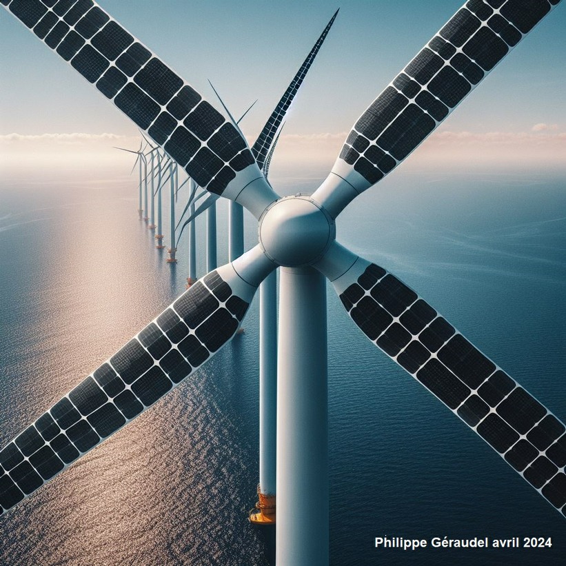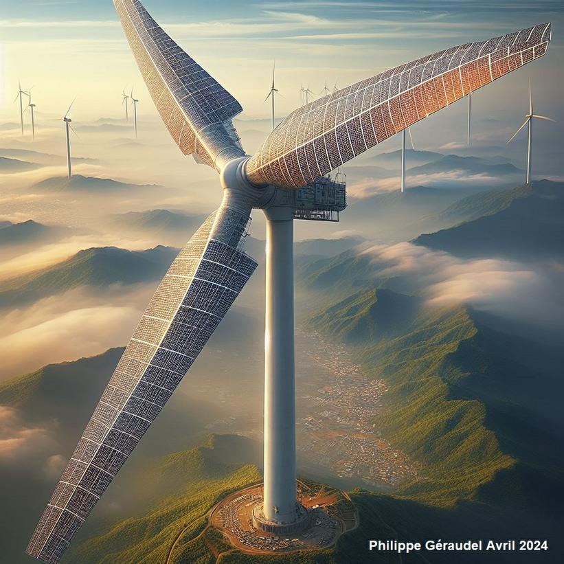 Cette solution combine les avantages de l'énergie éolienne et solaire en équipant les pales d'une éolienne traditionnelle de cellules photovoltaïques.