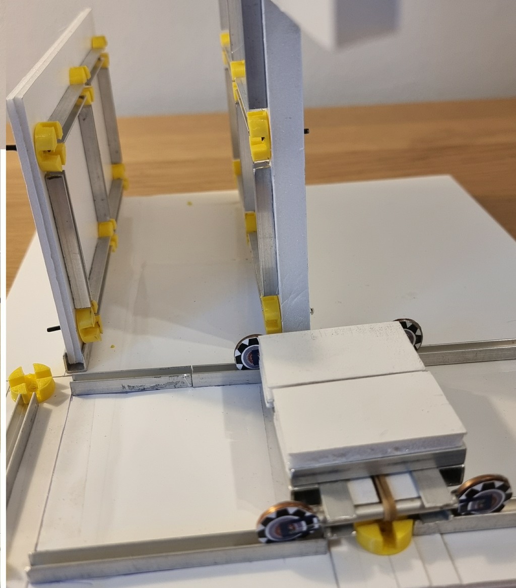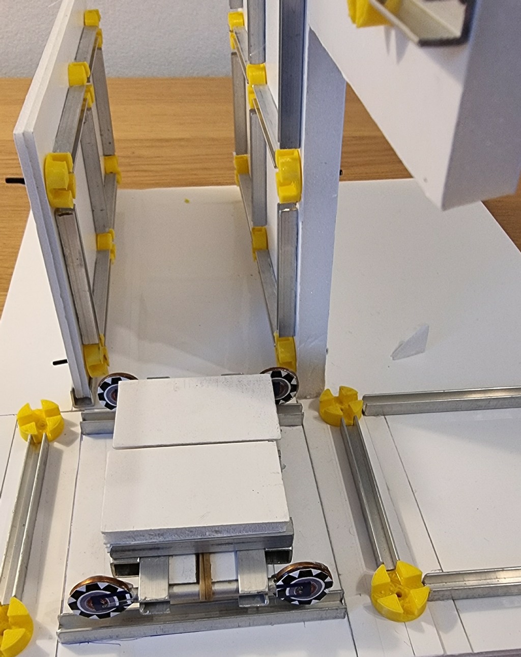 Il s’alimente directement sur des rails conducteurs, ce qui lui permet de fonctionner 24h/24 sans station de charge ni temps mort pour recharger ses batteries.