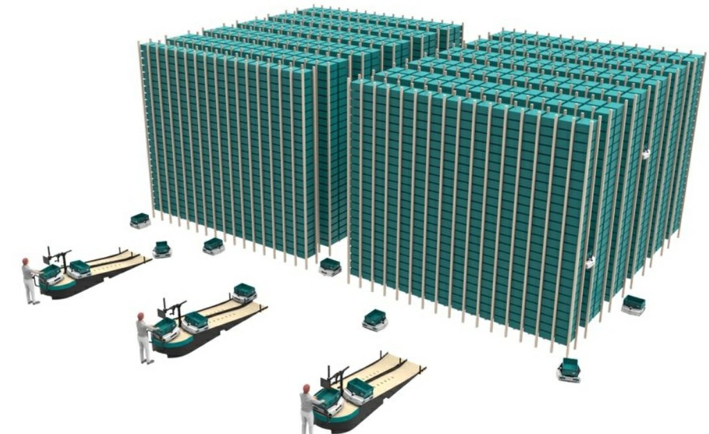 Pour cela toutes les opérations automatisées de préparation de commandes y compris le picking ont été concentrées à l’intérieur des racks.