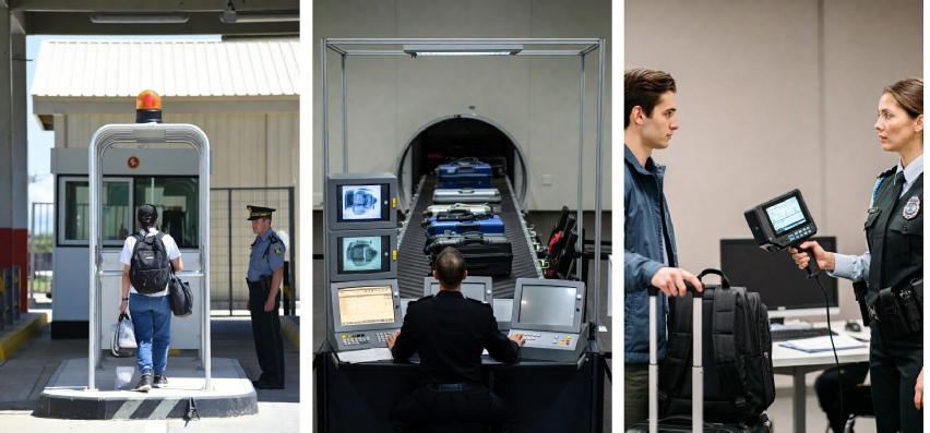 Les détecteurs portables, portiques fixes ou tunnels mesurent l’intensité du champ magnétique généré par la masse totale des particules.