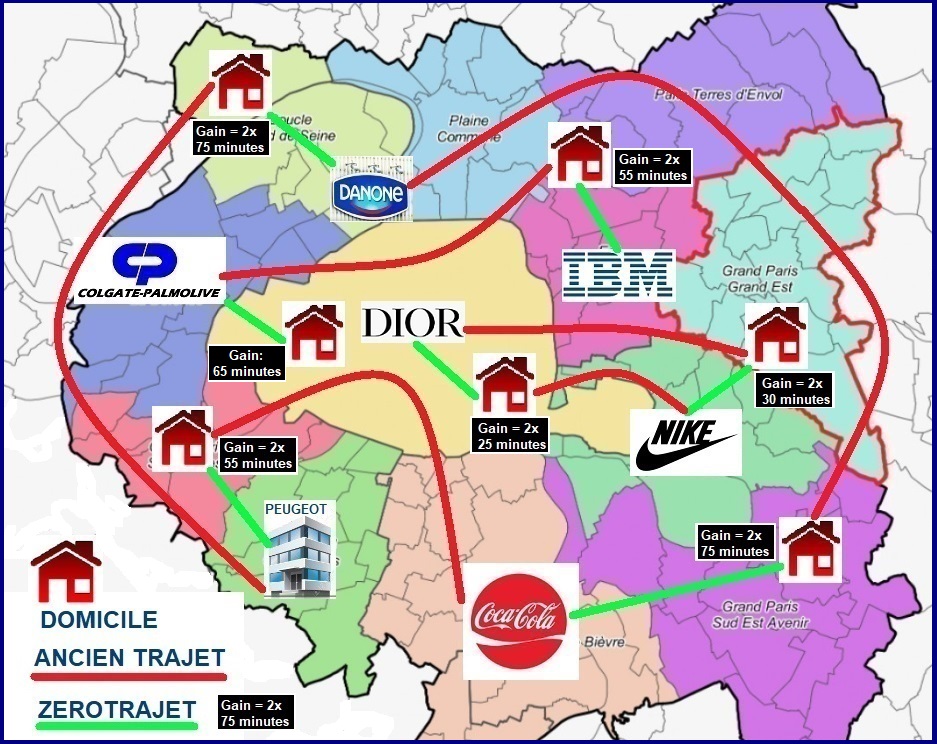 Pour Peugeot comme pour Danone, s'agissant d'échanges de surfaces libérées, par le télétravail, le coût et les déplacements ont été optimisés avec "Zerotrajet.com".