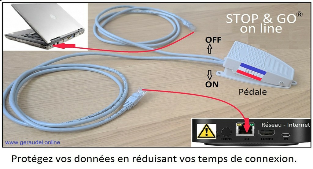 « Stop and Go on line » est un système mécanique inviolable de protection des données: il s’agit d’un interrupteur à pédale qui renforcera sécurité informatique en réduisant le temps de connexion à Internet ou à votre réseau.