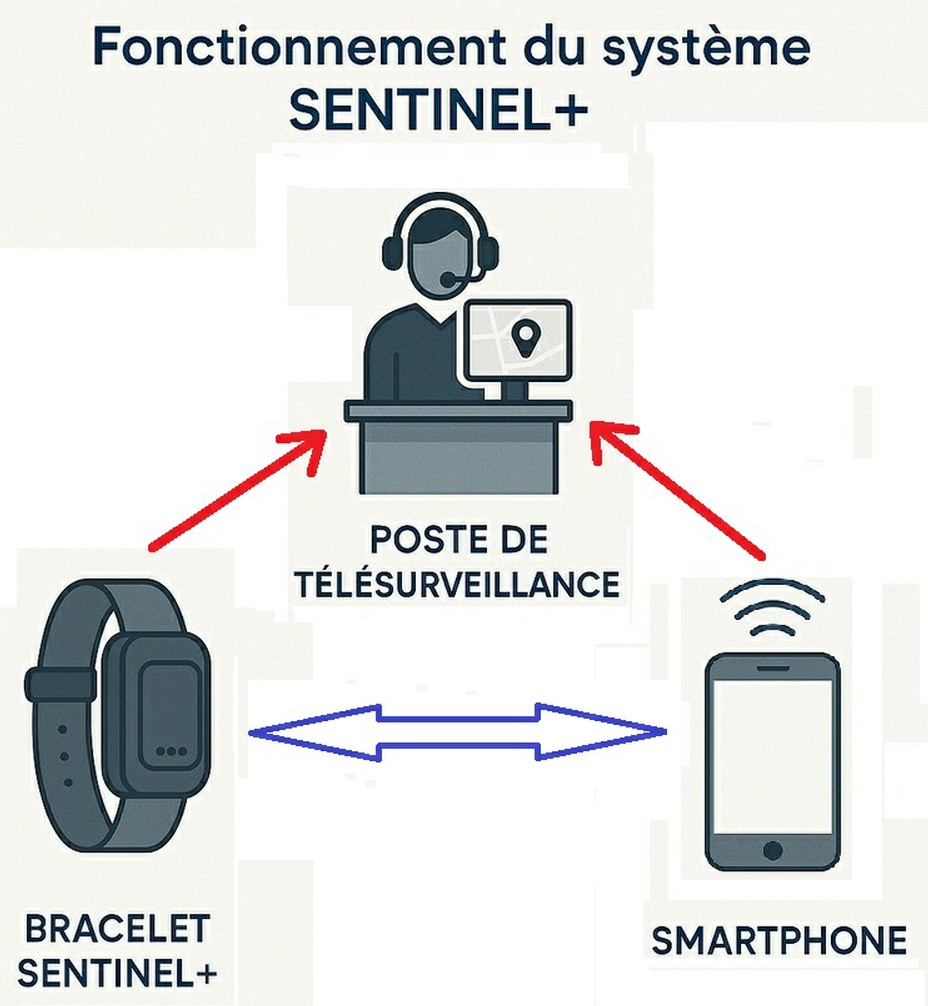 Le smartphone assure les fonctions intelligentes (localisation, communication, analyse), tandis que le bracelet garantit la preuve physique.
